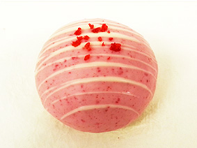 ホワイトチョコをふんわりパンにたっぷり包み、甘酸っぱいストロベリーチョコといちごチップで仕上げたスイーツみたいなパンです。