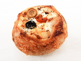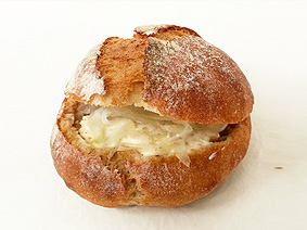 香ばしいフランスパンの中に、鶏肉の濃厚グラタンを閉じ込めました。とろけるチェダーチーズに、オリーブとドライトマトの酸味が重なります。
