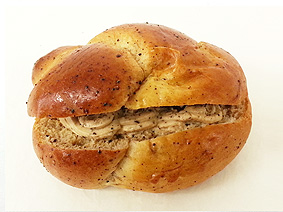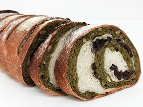抹茶とほっくり甘いかのこ豆とカリッと香ばしいカシューナッツ、ホワイトチョコの優しい甘みが口いっぱいに広がるパンです。